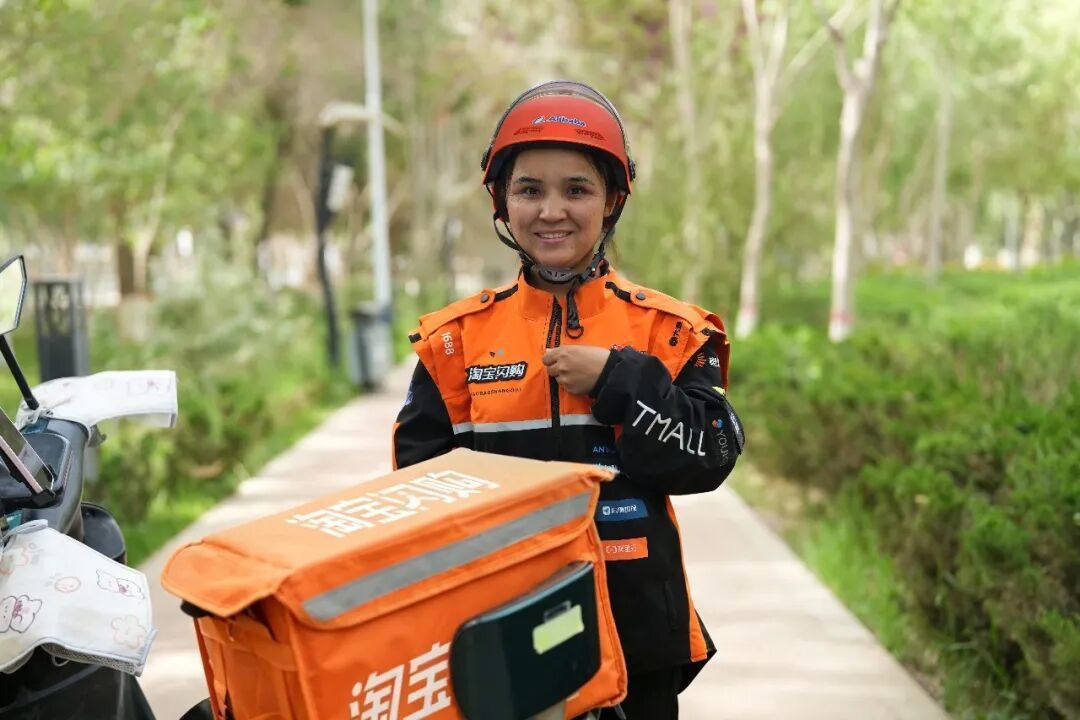 吾阿里汗·司拉木是新疆首位获得全国五一劳动奖章的女骑士。成为闪购骑士前,她全部身心都投入在家庭里。“我以前在家里照顾孩子,收入靠在大棚种地,靠天吃饭。”加入淘宝闪购后,她打开了一片天地,有了稳定的收入来源。