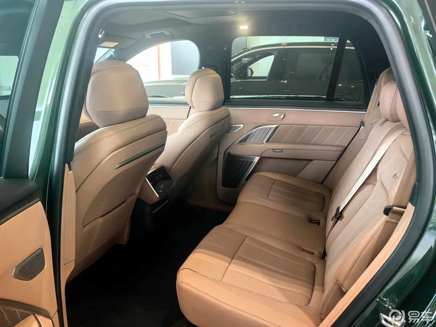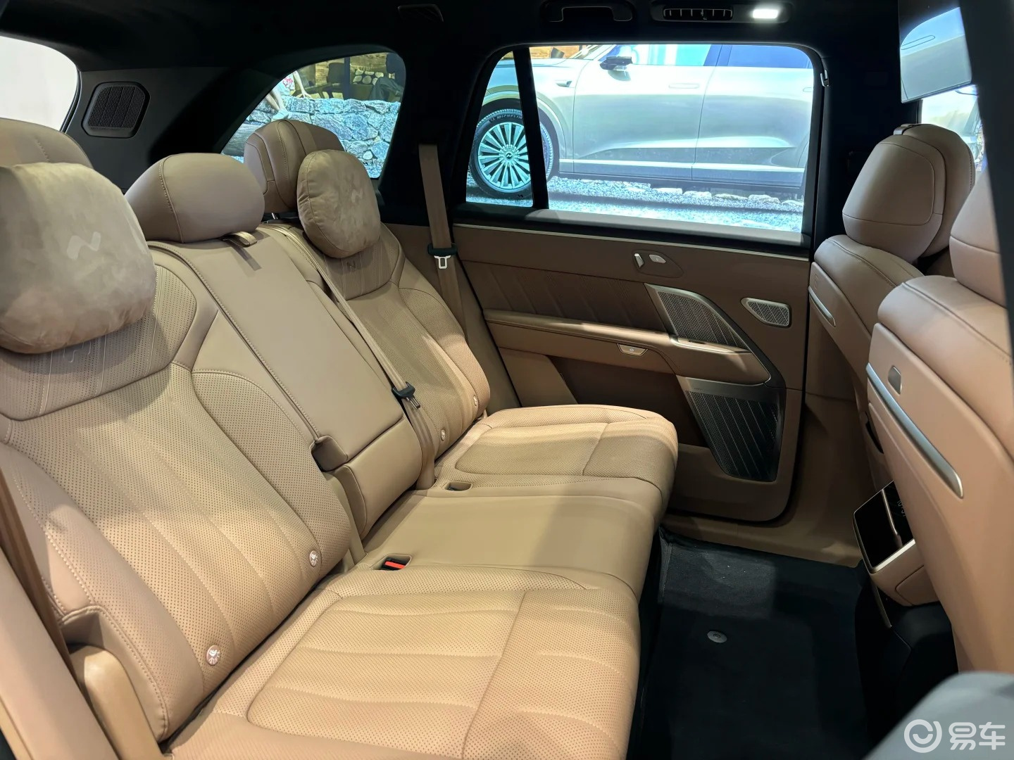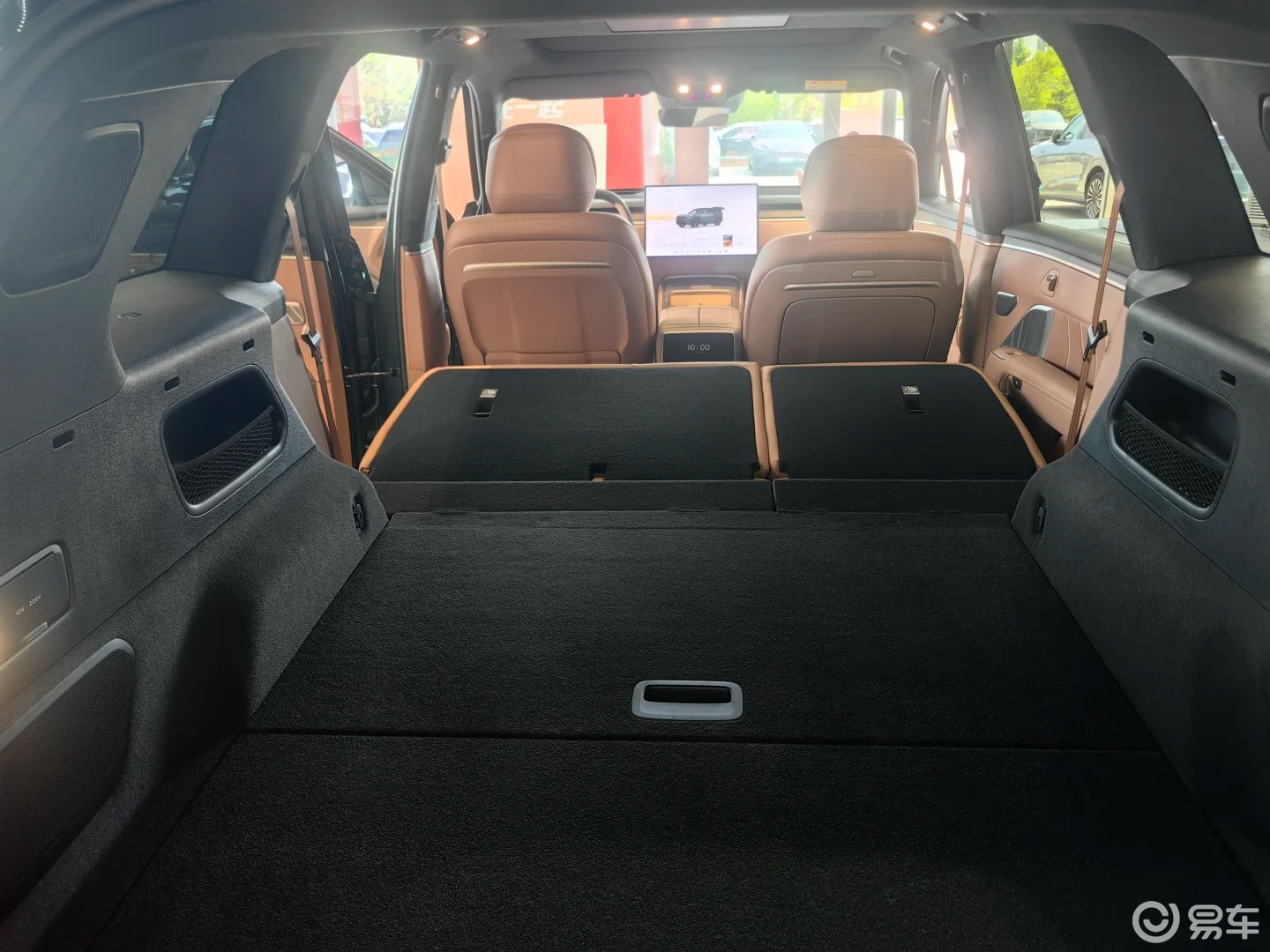 在车的尾部,乐道L80采用的是非常厚重的设计风格打造,新车的上半部分的后挡风玻璃占比面积较小,并且采用前倾式的风格打造,运动状态十分的明显,顶端还有扰流板。车的尾灯组采用的是非常细致的布局,尾部的下半部分采用的是很有层次感的效果,底部的包围很突出。新车的车身长度达到了5145mm,整体尺寸很大。