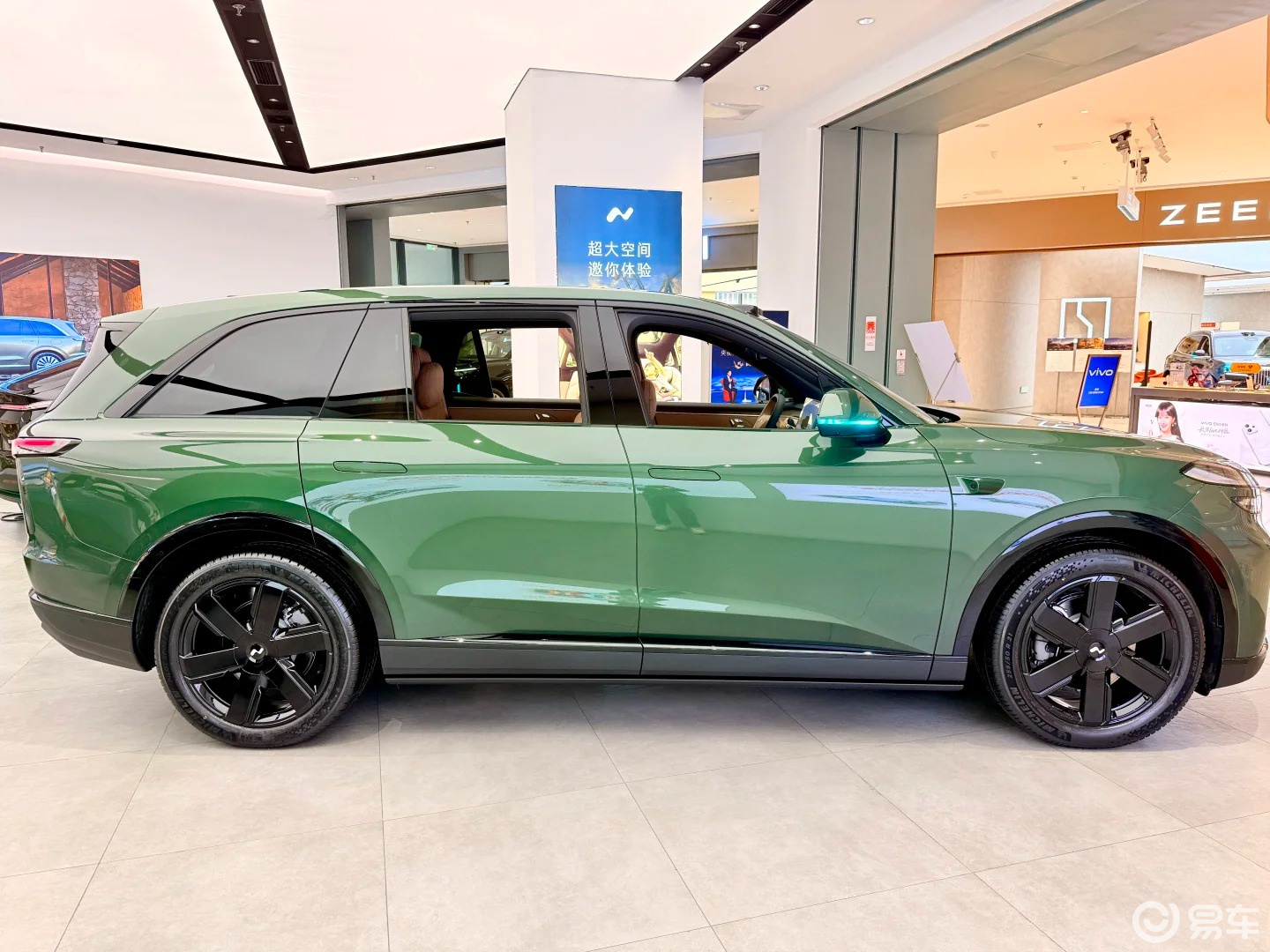在车身的侧面,我们可以看到乐道L80采用的是非常干练的造型,新车采用的是非常厚重的车身轮廓,并且它还有略微下沉的车顶,新车的D柱大幅度的前倾,车窗采用的是非常凌厉的风格打造,车窗的底端非常的平整。车身的侧面中间采用的是饱满的轮廓,它还有隐藏式的门把手的设计,车底部有高亮黑色包围。