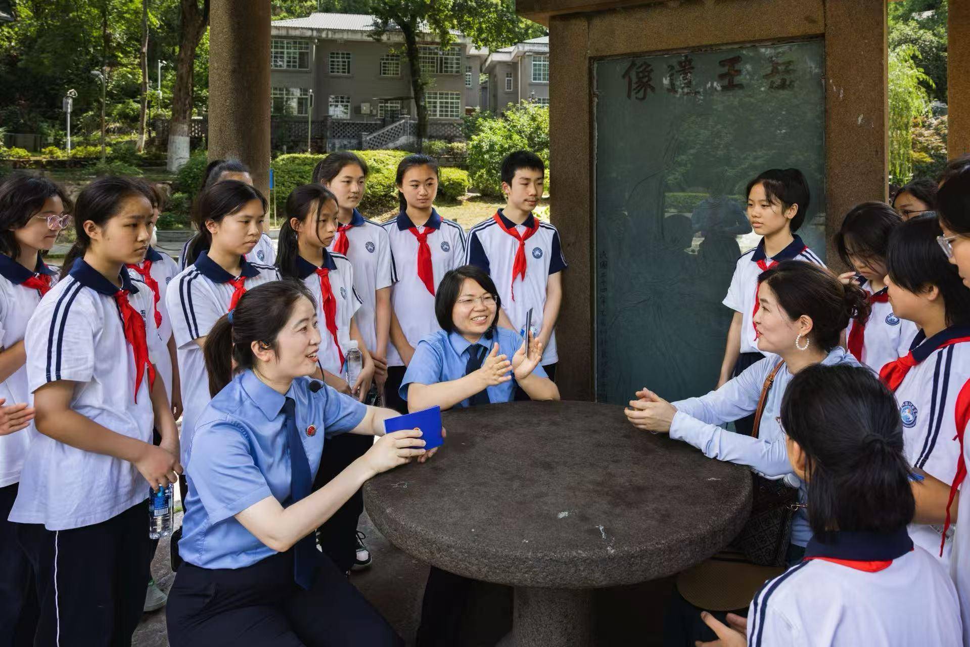 岳麓区检察院工作人员在主题开放日活动中为学生讲解文物保护的法律知识。受访单位供图